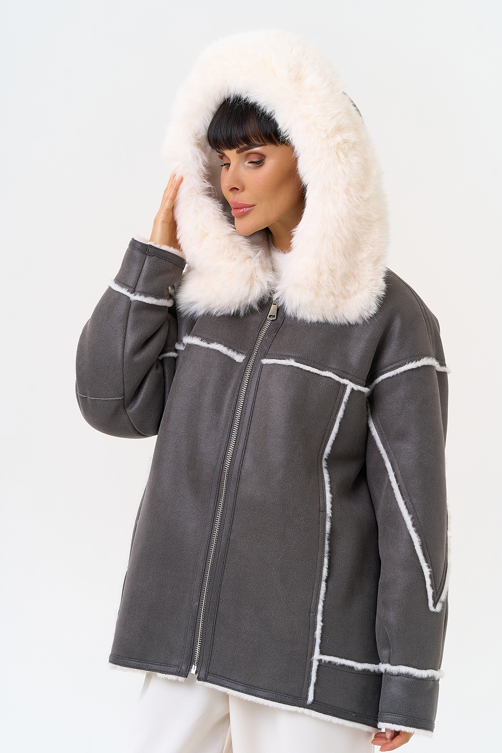 Отделка ворота - эко мех, цвет белый