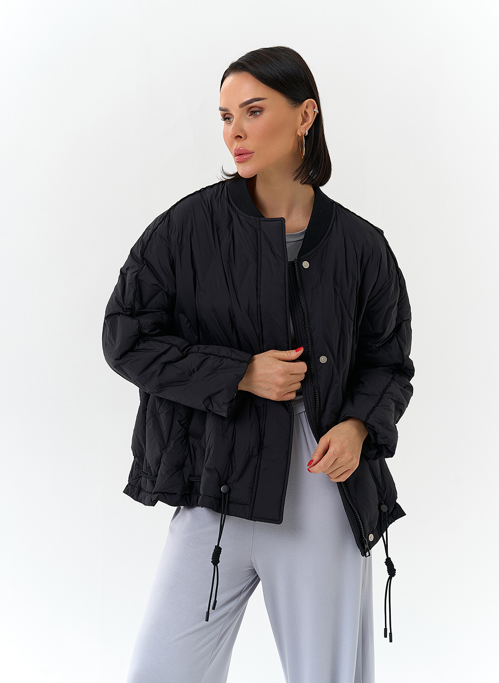 Для жителей Саратова у нас действует беспроцентная рассрочка и кредит на выбранный товар — Женская куртка бомбер черного цвета артикул saratov32658. Если у вас остались вопросы напишите или позвоните нам, и мы на них ответим.